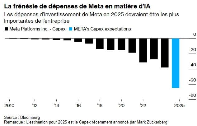 - 🧠 Meta : Planifie d’investir jusqu’à 65 milliards de dollars dans des projets liés à l’intelligence artificielle d’ici 2025 (+50 % par rapport à 2024).